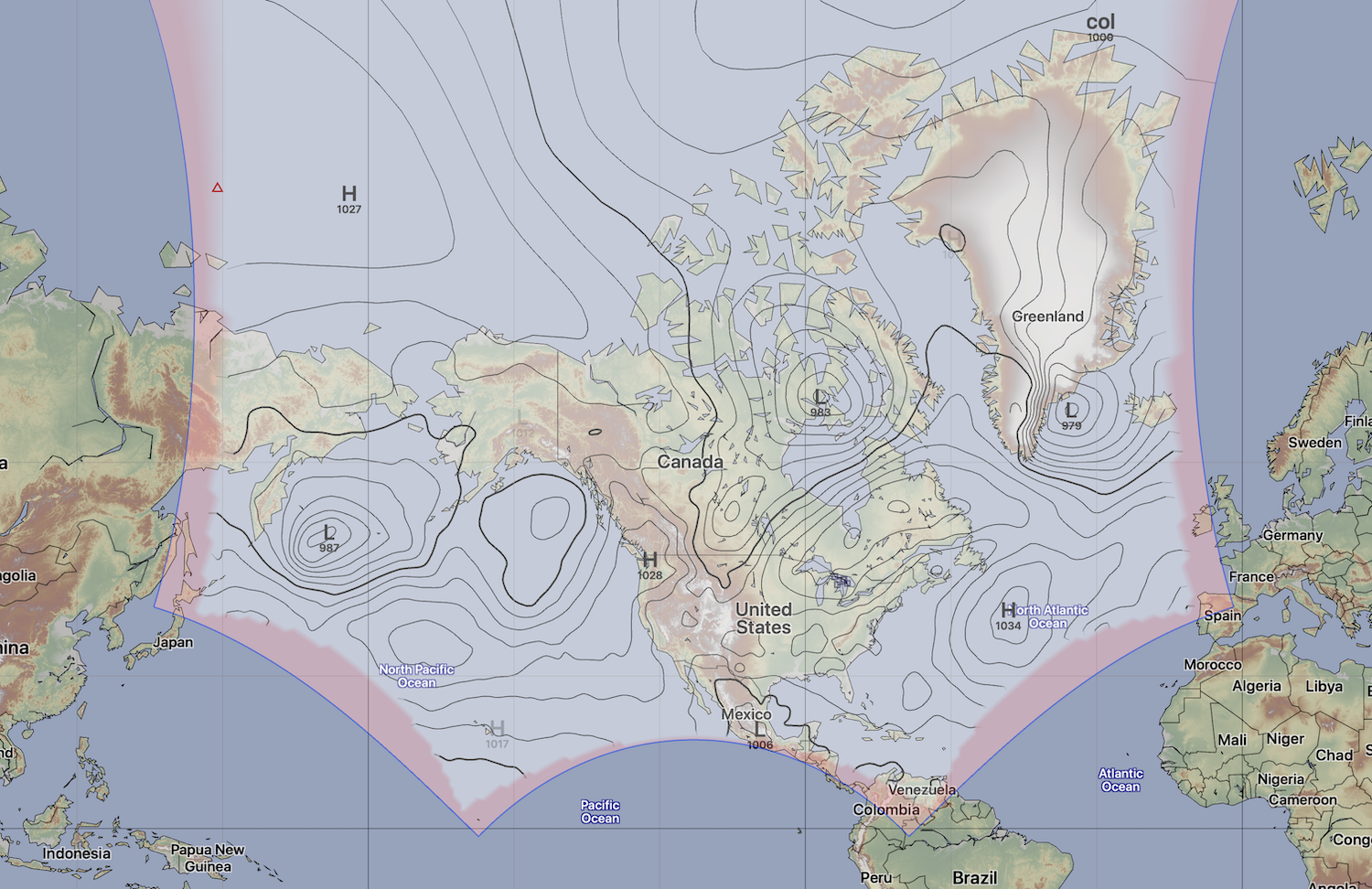 It may have been nice if the domain favored some of the southern area a little more than the northern ones (hey, the team didn’t consult me haha). Sailors who are crossing into South America will need to fall back on the global models, or NBM Oceanic, for some areas south of around the middle of Mexico. Also, sailors crossing between Europe and North America have a coverage gap (filled in with DMI Harmonie, DWD Icon and Meteo Arpège).