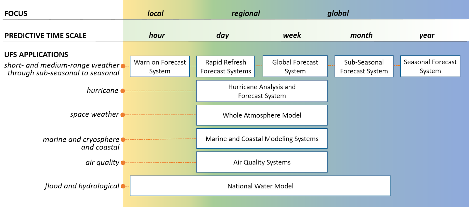 The UFS suite of modelsThe box labelled Rapid Refresh Forecast System is the most interesting in the short term, and is discussed further below.