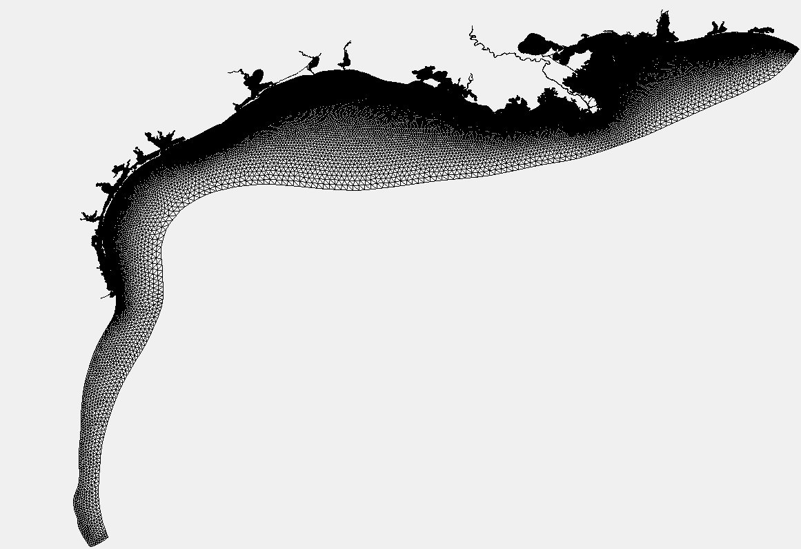 https://tidesandcurrents.noaa.gov/images/NGOFS2_grid.pngThe Northern Gulf of Mexico OFS model is calculated using a bathymetry following irregular grid which has over 300,000 grid nodes. The results of this computation are then sampled, by OFS, into a regular latitude / longitude aligned grid. The data on this regular grid are then converted to GRIB format by LuckGrib.