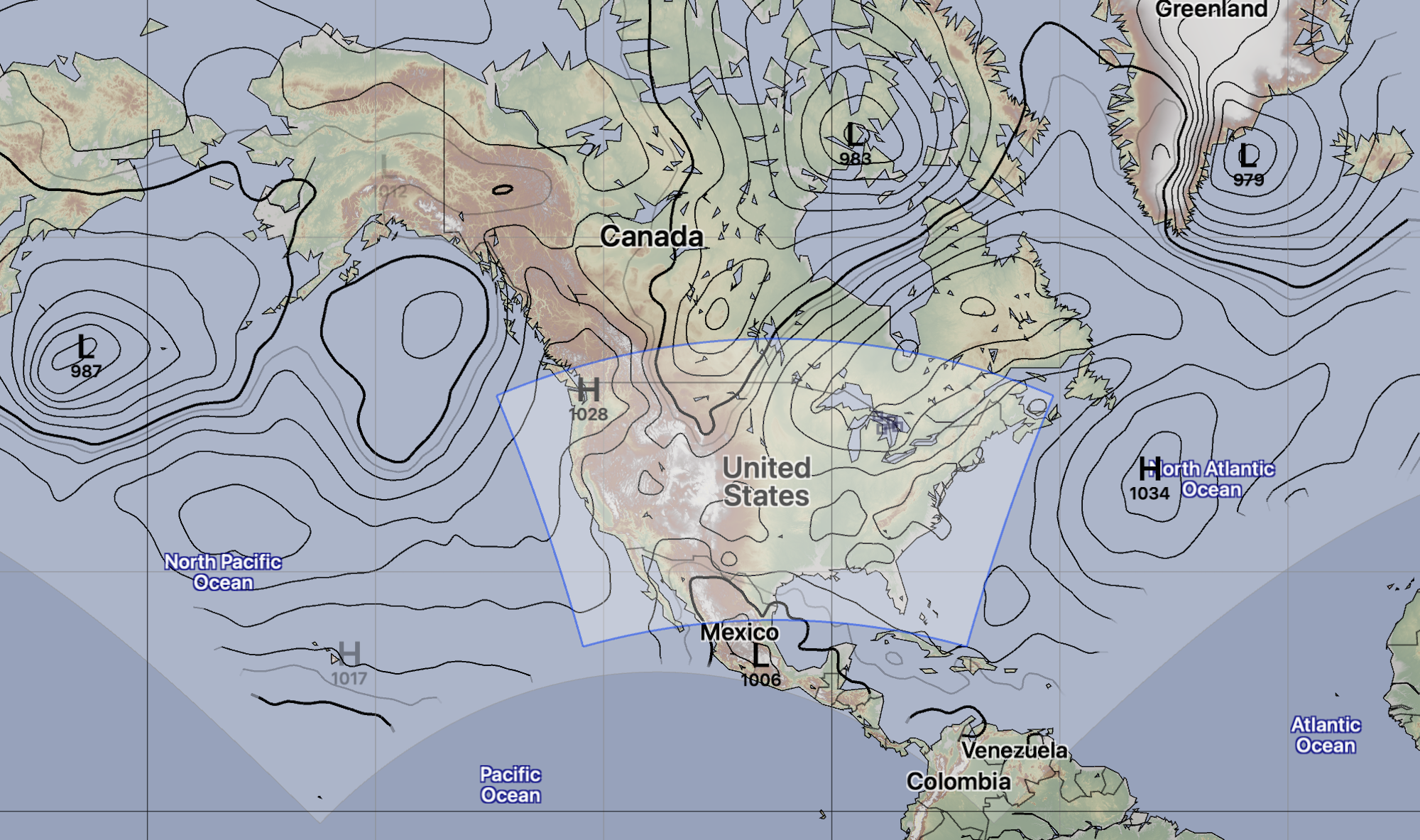 The RRFS domain as seen from spaceIn LuckGrib, the domain appears like this: